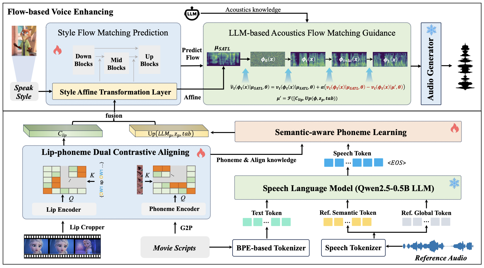 1. FlowDubber: Movie Dubbing with LLM-based Semantic-aware Learning and Flow Matching based Voice Enhancing (Gaoxiang Cong, Liang Li, Jiadong Pan, Zhedong Zhang, Amin Beheshti, Anton Van Den Hengel, Yuankai Qi, Qingming Huang)