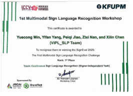2025年10月20日,ICCV 2025多模态连续手语识别竞赛(The First Multimodal Sign Language Recognition Challenge, MSLR)公布榜单,实验室团队(闵越聪、杨一帆、焦培淇、南子皙、陈熙霖)获得连续手语识别赛道“非特定人识别”和“未见语句识别”两个任务的冠军。实验室团队长期深耕于手语识别与翻译领域,这是继在今年WWW 2025 跨视角手语孤立词识别竞赛(Cross-View Isolated Sign Language Recognition)中获得了基于RGB和RGB-D模态输入两个任务的冠军之后本年度再次获奖。