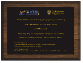 今年早些时候,团队还在WWW 2025 跨视角手语孤立词识别竞赛(Cross-View Isolated Sign Language Recognition, CV-ISLR)中同样取得冠军的佳绩。该竞赛旨在关注多视角场景下的手语识别问题。WWW2025竞赛评测涵盖了实验室场景、自然场景、合成背景与时序扰动四个子集,并设置了基于RGB与RGB-D模态输入的两个任务。实验室团队(彭钰婷、焦培淇、邹鸿刚、闵越聪、陈熙霖)通过跨视角数据增强与多模态融合等关键技术,有效提升了模型在未见视角下的识别性能,获得了RGB与RGB-D两个任务的冠军。